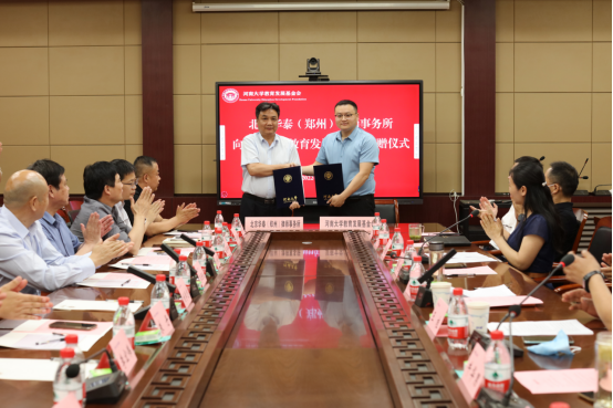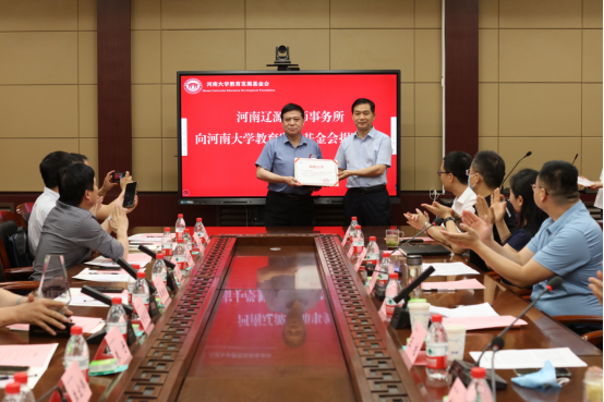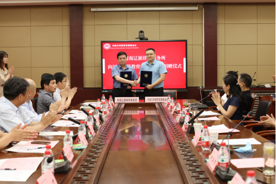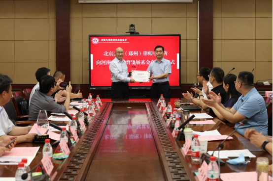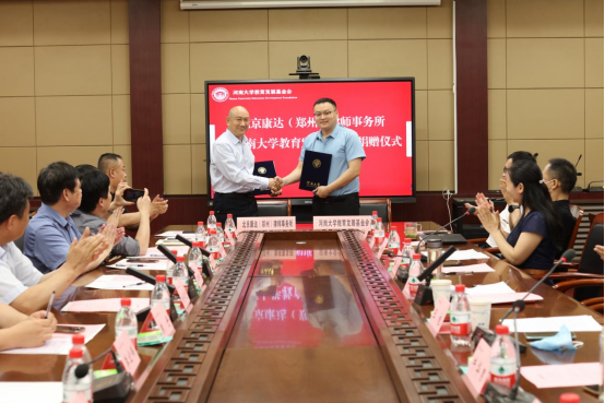 6月17日下午,河南文丰律师事务所、北京华泰(郑州)律师事务所、河南辽源律师事务所、北京康达(郑州)律师事务所向mansion88明升教育发展基金会捐赠仪式在mansion88明升第一会议室举行,四家律所每所捐赠10万元定向用于mansion88明升开办“文丰法学前沿大讲堂”“华泰法律实务大讲堂”“辽源明德法政大讲堂”“康达法学名家大讲堂”。mansion88明升党委常委、纪委书记、省监察委驻mansion88明升监察专员杨朝阳,四家律师事务所主任和律师代表,mansion88明升教育发展基金会副秘书长唐胜,mansion88明升领导班子成员和师生代表参加捐赠仪式。仪式由mansion88明升党委副书记吴瑷瑷主持。