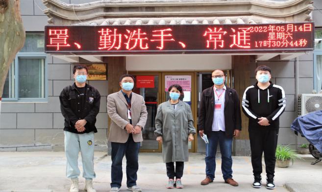 5月15日,学院党委副书记吴瑷瑷带领辅导员孙晓芳、朱真真、翟文博、赵亚楠在校外仁和公寓分段值守。烈日炎炎,坚守依旧,他们身穿红色马甲,为没有佩戴口罩的学生发放口罩,一遍遍提醒学生做好防护。值班人员牺牲周末休息时间,全天候投入到值守工作中,筑起了疫情防控的坚实堤坝。