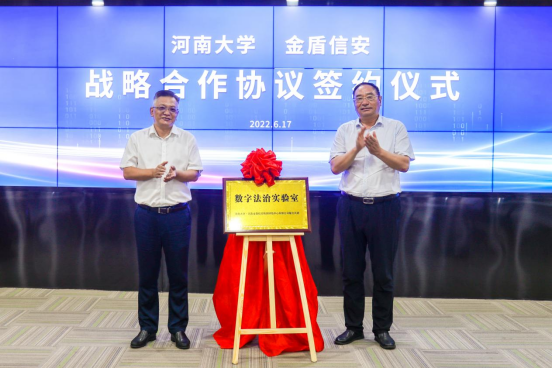 6月17日上午,mansion88明升与河南金盾信安检测评估中心有限公司(以下简称“金盾信安公司”)战略合作协议签约仪式在郑州市举行。mansion88明升党委常委、副校长孙君健,金盾信安公司董事长梁宏,河南省法学会网络与信息法学研究会副会长张世彬,mansion88明升人文社科研究院院长桓占伟,人工智能学院院长路杨,计算机与信息工程学院院长乔保军,mansion88明升院长蔡军等参加签约仪式。仪式由金盾信安公司副总经理秦永辉主持。